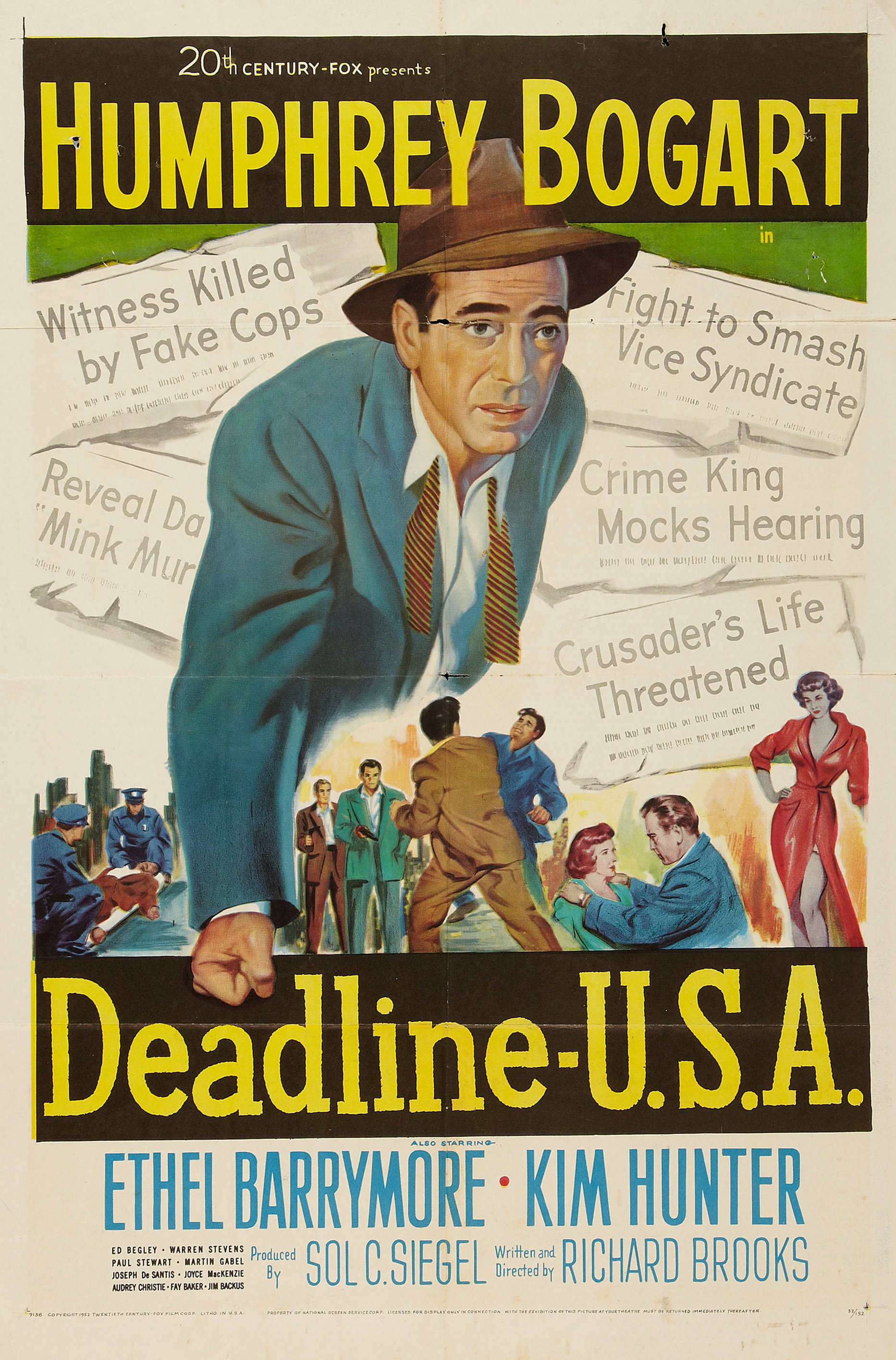 New York City newspaper "The Day" is in trouble. Even though editor Ed Hutcheson (Humphrey Bogart) has worked hard running the paper, its circulation has been steadily declining. Now the widow (Ethel Barrymore) of the paper's publisher wants to sell the paper, which will most likely mean its end. Hutcheson also worries that his estranged ex-wife is about to remarry. His only hope of saving the paper is to finish his exposé on a dangerous gangster (Martin Gabel) before the sale is made final.