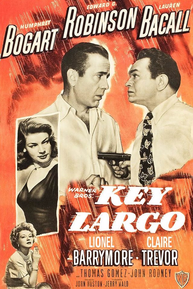 This classic film noir by John Huston stars Humphrey Bogart as World War II vet Frank McCloud. Visiting Key Largo to pay his respects to the family of his late war buddy, McCloud attempts to comfort his comrade's widow, Nora (Lauren Bacall), and father, James Temple (Lionel Barrymore), who operate a hotel. But McCloud realizes that mobsters, led by the infamous Johnny Rocco (Edward G. Robinson), are staying in the hotel. When the criminals take over the establishment, conflict is inevitable.