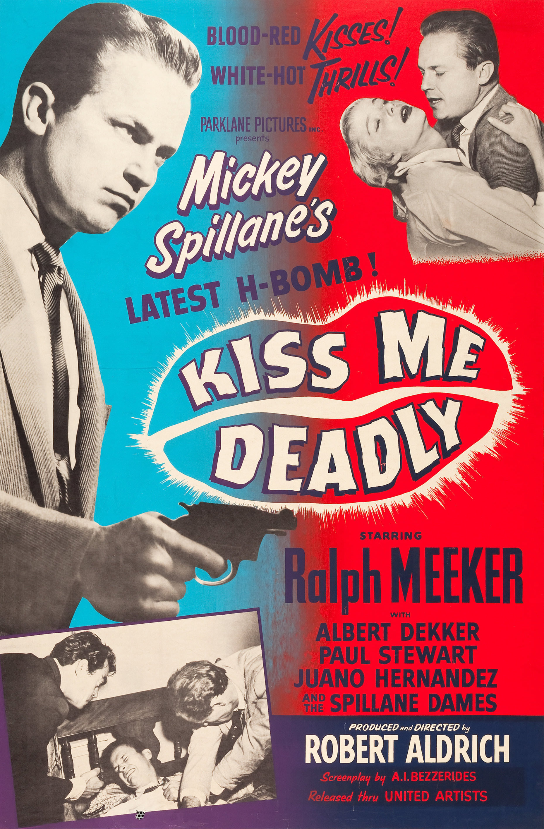 One evening, private detective Mike Hammer (Ralph Meeker) picks up a strange woman, Christina (Cloris Leachman), who's standing on the highway wearing only a trench coat. They're stopped farther on by strangers who knock out Mike and murder Christina. Although warned not to investigate by the police, Mike and his girlfriend and assistant, Velda (Maxine Cooper), become ensnared in a dark plot involving scientist Dr. Soberin (Albert Dekker) and Christina's terrified roommate, Lily (Gaby Rodgers).