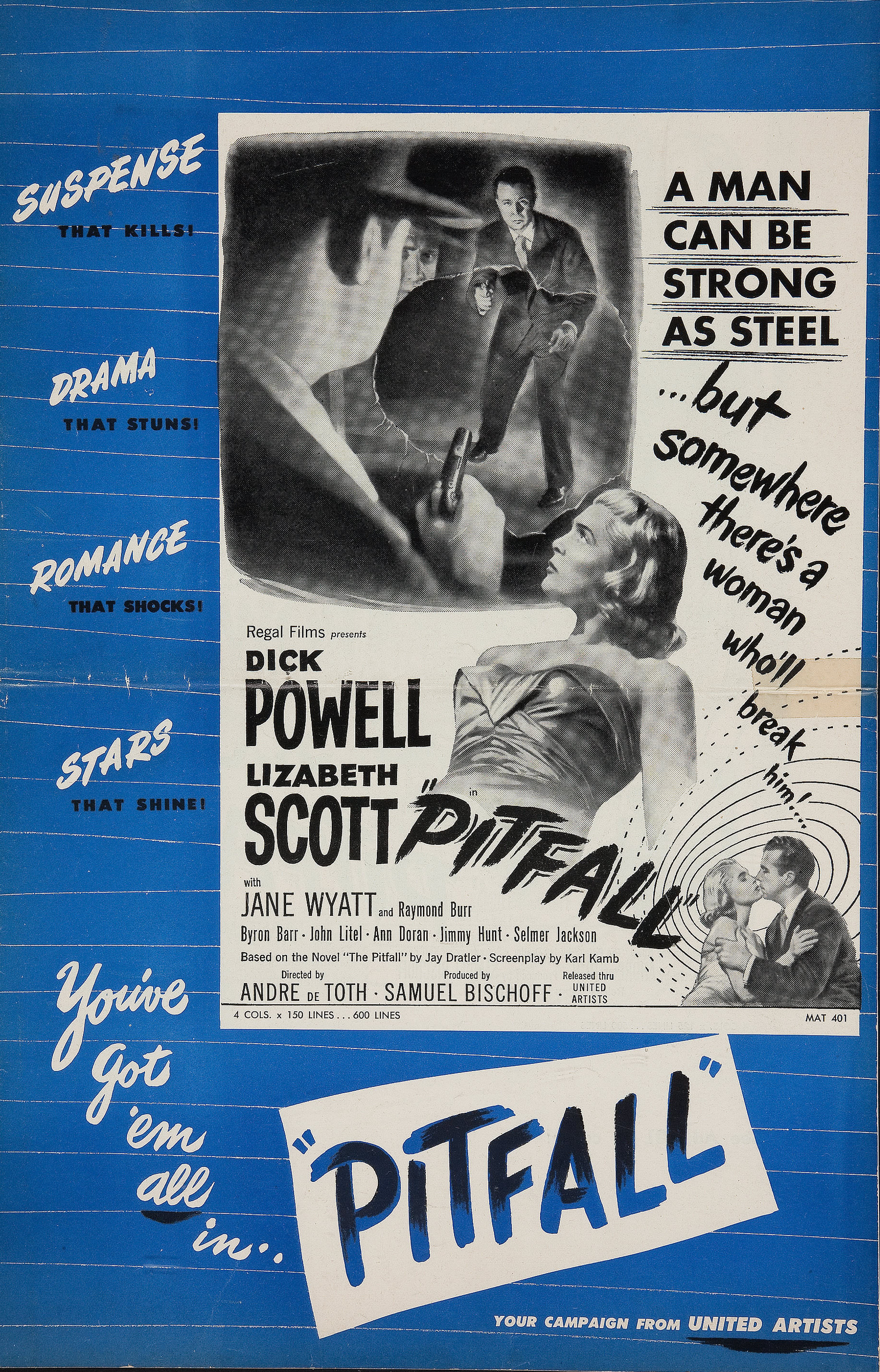 An insurance man's (Dick Powell) affair with a blonde (Lizabeth Scott) leads to guilt, murder and a confession to his wife (Jane Wyatt).