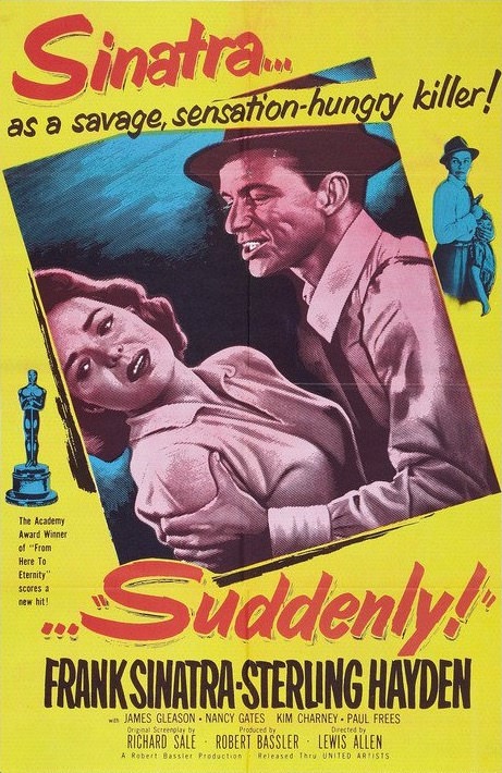In advance of a presidential visit to the small town of Suddenly, California, a trio of FBI agents enters the Benson family's home to assess potential security risks. Once inside, leader John Baron (Frank Sinatra) reveals himself as a psychopathic assassin, and he kidnaps the family in order to use their house as his vantage point in his plot to kill the president. Sheriff Tod Shaw (Sterling Hayden) matches wits with the assassin and his gang in an attempt to save the day.