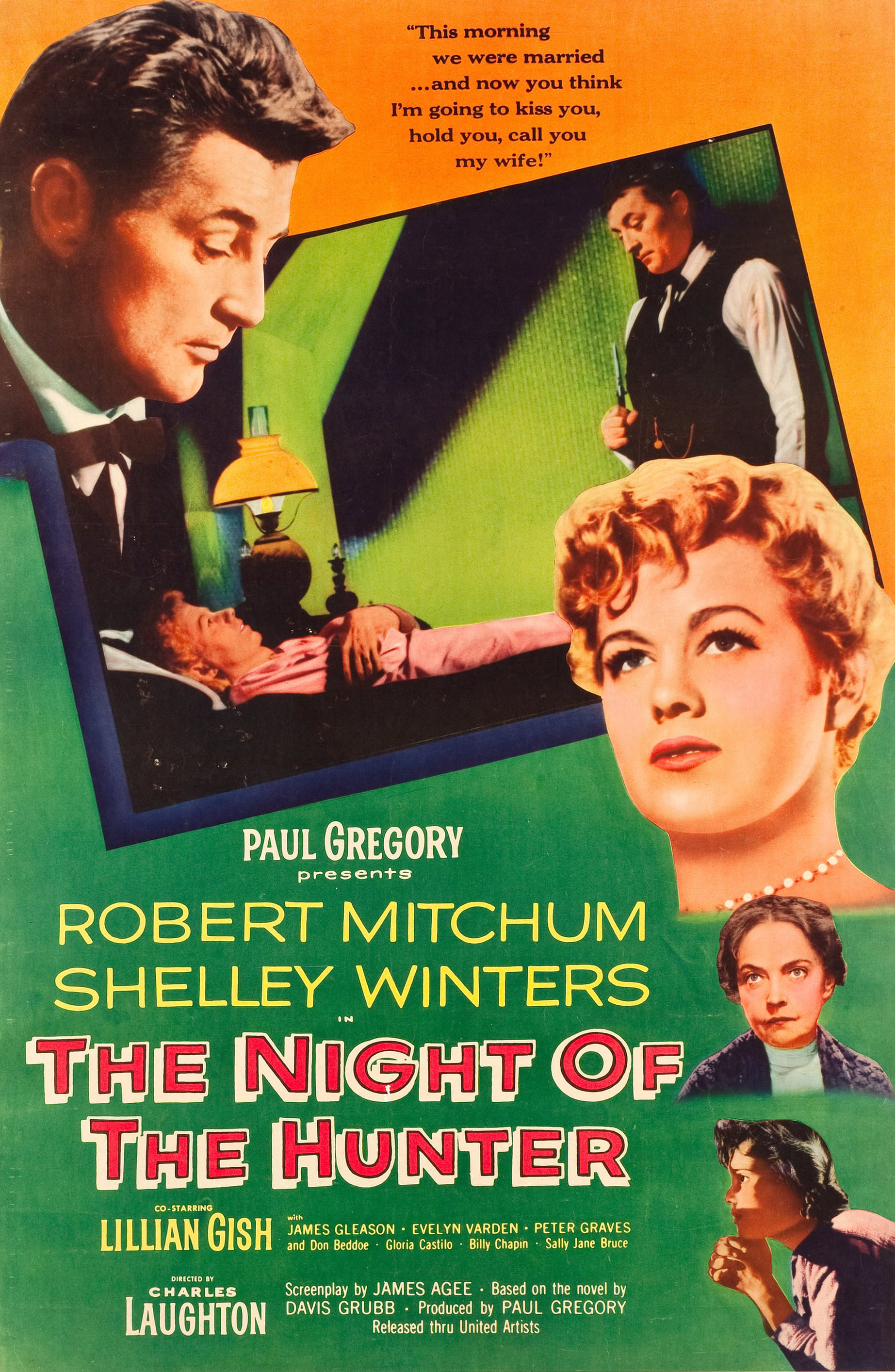The Rev. Harry Powell (Robert Mitchum) is a religious fanatic and serial killer who targets women who use their sexuality to attract men. Serving time in prison for car theft, he meets condemned murderer Ben Harper (Peter Graves), who confesses to hiding $10,000 in stolen loot. Released from jail, Powell is obsessed with finding the money, and he tracks down Harper's widow, Willa (Shelley Winters), and her two children, John (Billy Chapin) and Pearl (Sally Jane Bruce).