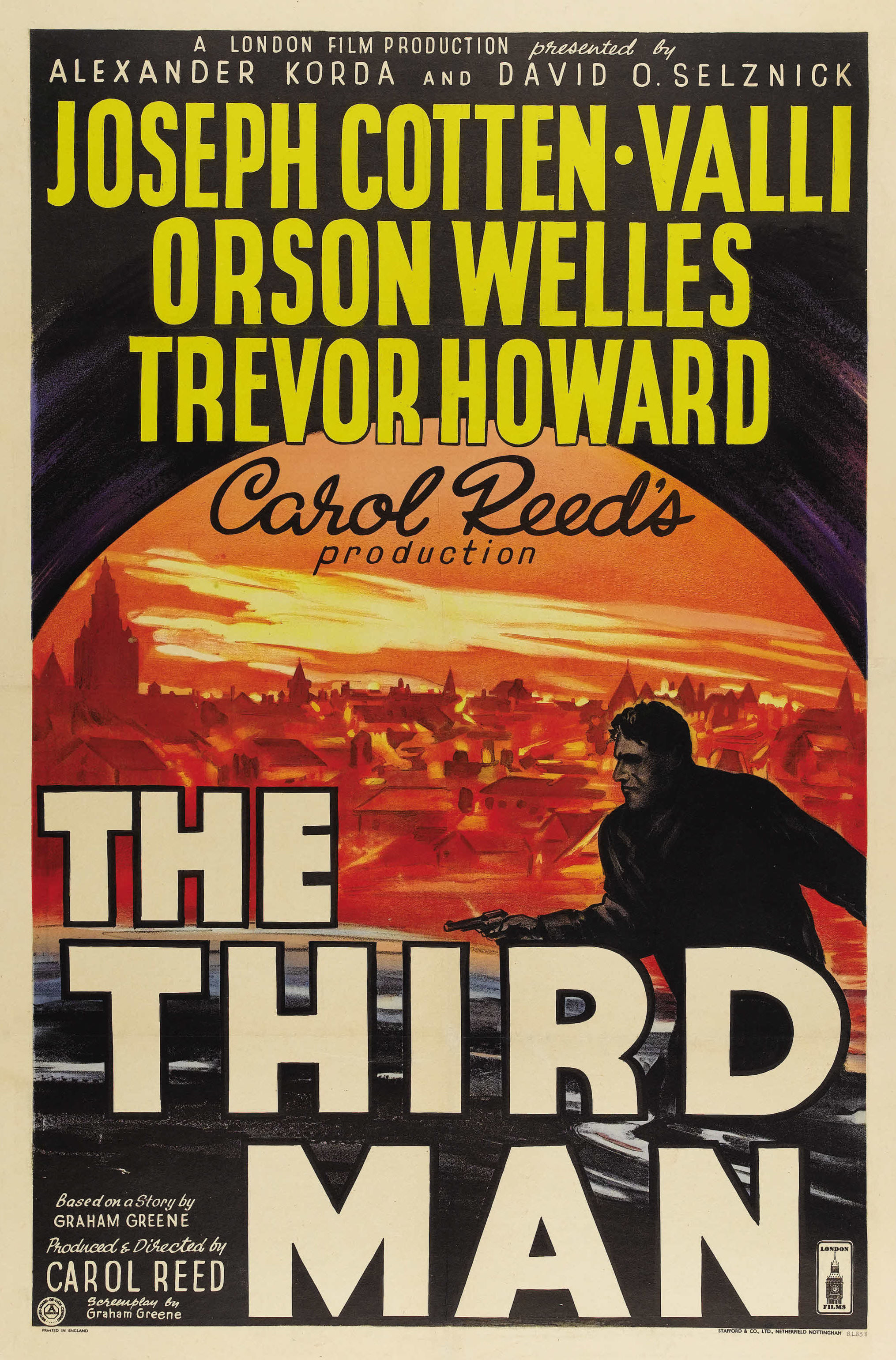 Set in postwar Vienna, Austria, "The Third Man" stars Joseph Cotten as Holly Martins, a writer of pulp Westerns, who arrives penniless as a guest of his childhood chum Harry Lime (Orson Welles), only to find him dead. Martins develops a conspiracy theory after learning of a "third man" present at the time of Harry's death, running into interference from British officer Maj. Calloway (Trevor Howard) and falling head-over-heels for Harry's grief-stricken lover, Anna (Alida Valli).